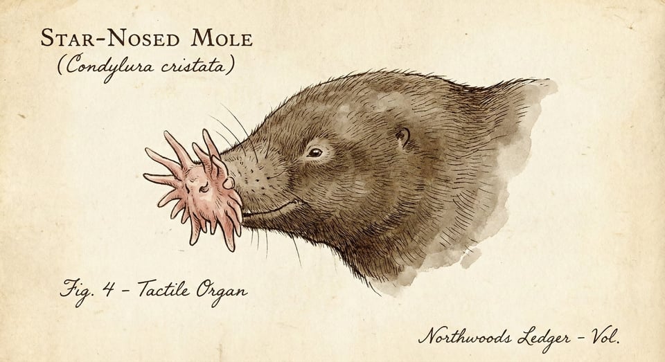 While the Eastern Mole prefers the dry, upland soils of our gardens, a far more specialized relative haunts the wet margins of Northern Wisconsin. In the mucky soils of our stream banks and lake borders, the Star-nosed Mole (Condylura cristata) operates as a pinnacle of sensory evolution. Often dismissed as a mere pest, this species possesses the most sensitive touch organ of any mammal, functioning with a speed that challenges the limits of neurobiology.